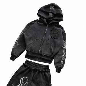 This embroidered sweatsuit combines luxury with comfort, featuring intricate embroidery for a stylish touch. Made from soft, premium fabric, it offers a cozy fit perfect for all-day wear. The matching hoodie and joggers create a sleek, coordinated look. Elevate your casual wardrobe with this trendy and sophisticated set!